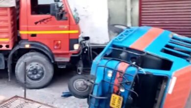 तेज रफ्तार ट्रक ने टक्कर मारकर कई वाहनों को किया क्षतिग्रस्त
