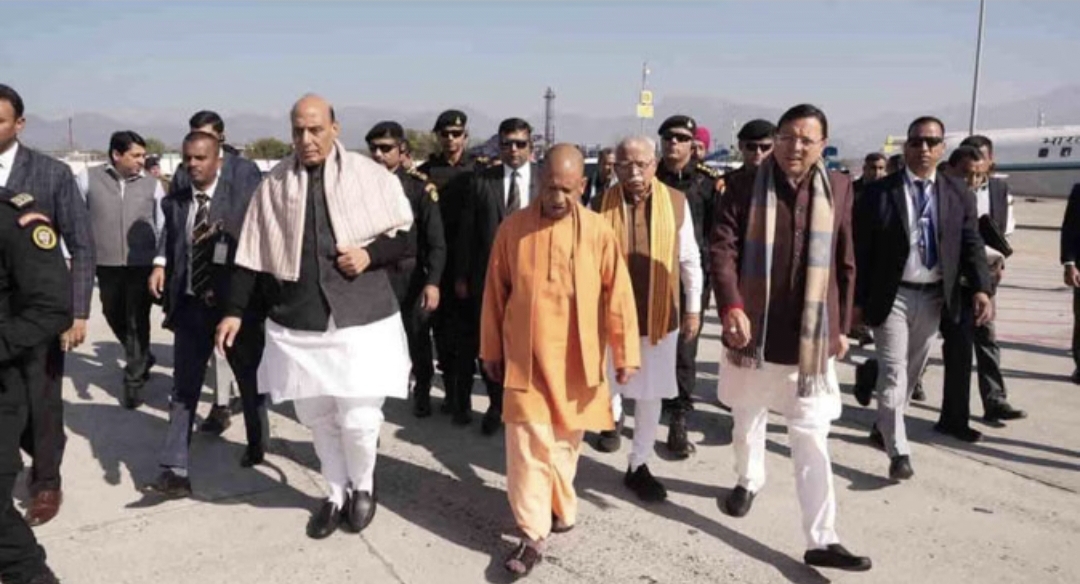 रक्षा मंत्री राजनाथ सिंह, यूपी के मुख्यमंत्री योगी आदित्यनाथ और केंद्रीय मंत्री मनोहर लाल खट्टर ने आज उत्तराखंड दौरे पर पहुंचे हैं। जौलीग्रांट एयरपोर्ट पर मुख्यमंत्री पुष्कर सिंह धामी ने सभी का स्वागत किया।