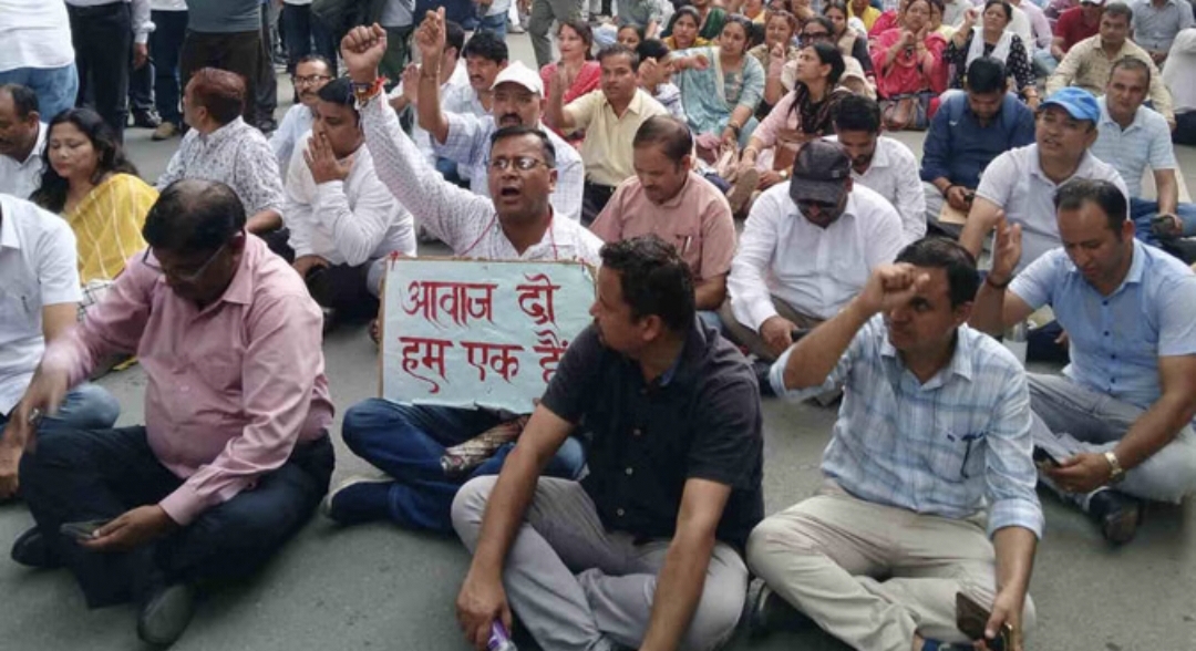 Dehradun: State Teachers' Union marches to Chief Minister's residence, heavy police force deployed to stop them