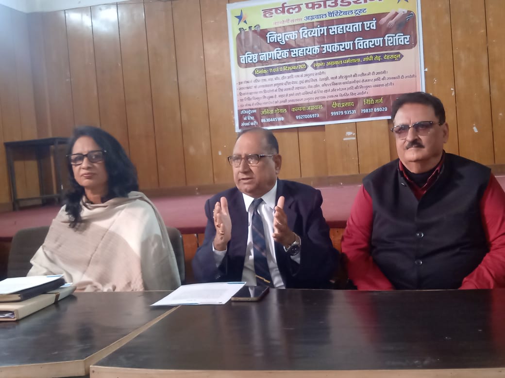 देहरादून : हर्षल फाउंडेशन, देहरादून द्वारा 11 एवं 12 दिसंबर 2025 को अग्रवाल धर्मशाला, गांधी रोड, देहरादून में निःशुल्क दिव्यांग सहायता एवं वरिष्ठ नागरिक सहायक उपकरण वितरण शिविर का आयोजन किया जा रहा है। यह वार्षिक शिविर वर्ष 2014 से आयोजित हो रहा है और अब तक 10,000 से अधिक दिव्यांगजन लाभान्वित हो चुके हैं। शिविर में दिव्यांगजनों को निःशुल्क कृत्रिम हाथ-पैर (जो मौके पर नाप के अनुसार बनाए जाएंगे), व्हीलचेयर, ट्राई साइकिल, बैसाखी, चलने की छड़ी, चश्मे, सुनने की मशीन एवं वरिष्ठ नागरिकों के लिए सहायक उपकरण उपलब्ध कराए जाएंगे। साथ ही, शिविर में कौशल विकास प्रशिक्षण, सरकारी योजनाओं जैसे पेंशन, ऋण एवं रोजगार योजना आदि की जानकारी एवं पंजीकरण की सुविधा भी दी जाएगी। बाहर से आने वाले लाभार्थियों और उनके एक सहयोगी के लिए निःशुल्क आवास एवं भोजन की व्यवस्था भी की गई है। हर्षल फाउंडेशन सभी नागरिकों, समाजसेवियों एवं संगठनों से निवेदन करता है कि इस शिविर की जानकारी ज़रूरतमंदों तक पहुँचाएँ, ताकि अधिक से अधिक दिव्यांगजन इसका लाभ ले सकें। पंजीकरण या अधिक जानकारी के लिए संपर्क करें: अमिता गोयल (8630445188), कल्पना अग्रवाल (9927006973), दीप प्रसाद (9997993531), निधि गर्ग (7983789020), डॉ. रमा गोयल – ट्रस्टी सेक्रेटरी, हर्षल फाउंडेशन (7895378323, 8630309340)।