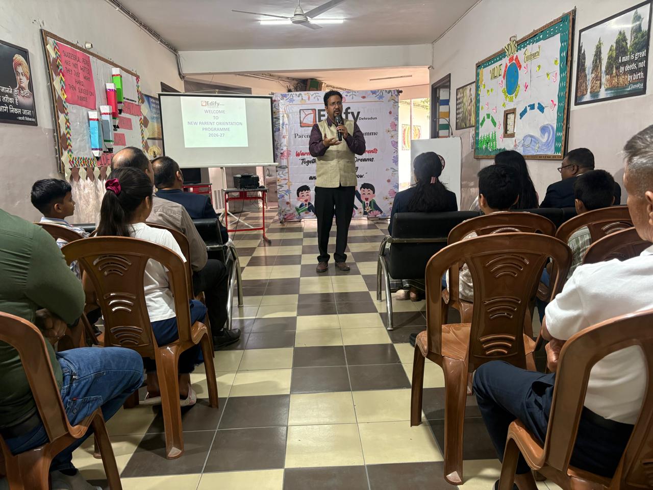 इसके बाद सत्र की शुरुआत स्वागत संबोधन से हुई, जिसके बाद एक विस्तृत प्रस्तुति दी गई। प्रस्तुति में विद्यालय के दृष्टिकोण, मूल मूल्यों तथा बाल-केंद्रित शिक्षण पद्धति पर प्रकाश डाला गया। सभा को संबोधित करते हुए प्रधानाचार्य प्रदीप कुमार गौड़ ने विद्यार्थियों के सर्वांगीण विकास के लिए अभिभावकों की सक्रिय सहभागिता को अत्यंत महत्वपूर्ण बताया और स्कूल तथा अभिभावकों के बीच मजबूत सहयोग की आवश्यकता पर बल दिया। ओरिएंटेशन कार्यक्रम के दौरान अभिभावकों को शैक्षणिक पाठ्यक्रम, सह-पाठ्यक्रम गतिविधियों तथा विद्यालय परिसर में लागू सुरक्षा उपायों के बारे में विस्तृत जानकारी प्रदान की गई। इस अवसर पर निदेशक एडवोकेट पंकज होलकर ने भी अपने विचार साझा करते हुए भविष्य के लिए सक्षम, आत्मविश्वासी और कुशल शिक्षार्थियों के निर्माण के प्रति विद्यालय की प्रतिबद्धता को दोहराया। कार्यक्रम का समापन एक सकारात्मक संदेश के साथ हुआ, जिसने रचनात्मक, आत्मनिर्भर और कुशल विद्यार्थियों के विकास के लिए विद्यालय और अभिभावकों के साझा प्रयासों को और सुदृढ़ किया। सत्र के अंत में सभी अभिभावकों के लिए जलपान की व्यवस्था की गई।