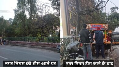 नगर निगम टीम को खुली चुनौती निगम द्वारा अतिक्रमण की कार्यवाही के बाद फुटपाथ पर कब्जा ,