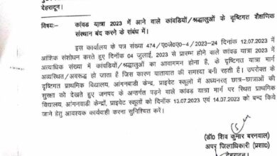 देहरादून: कांवड यात्रा 2023 में आने वाले कांवडियों / श्रद्धालुओं दृष्टिगत शैक्षणिक संस्थान बंद करने के संबंध में। इस कार्यालय…