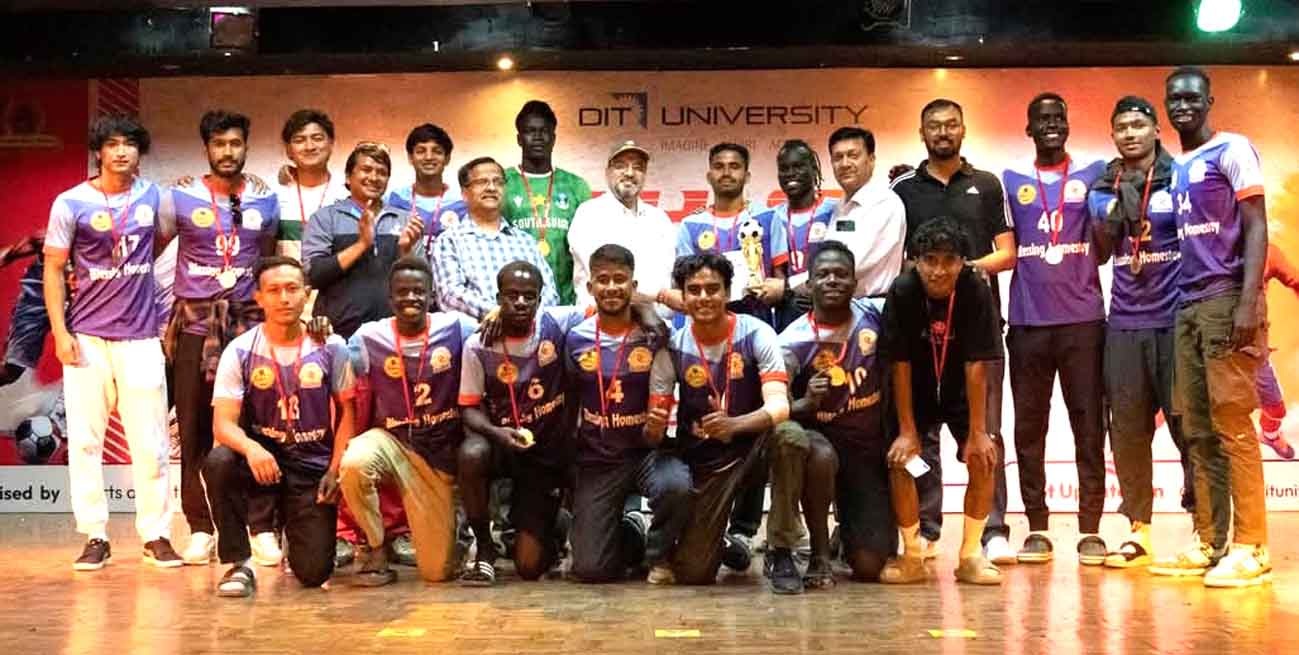 शानदार प्रदर्शनों में से: फुटबॉल लड़के: ग्राफिक एरा यूनिवर्सिटी ने खिताब जीता, डीआईटी यूनिवर्सिटी दूसरे स्थान पर रही। क्रिकेट: यूपीईएस विजयी हुआ, जबकि आईटीएम ने दूसरा स्थान हासिल किया। वॉलीबॉल लड़के: मदरहुड यूनिवर्सिटी ने ताज जीता, यूआईटी दूसरे स्थान पर रही। वॉलीबॉल लड़कियां: डीएवी ने चैंपियनशिप का दावा किया, जबकि यूपीईएस दूसरे स्थान पर रही। टेबल टेनिस: यूपीईएस ने प्रतियोगिता में दबदबा बनाया, डीआईटी यूनिवर्सिटी दूसरे स्थान पर रही। बास्केटबॉल लड़के: एमईआईटी मेरठ ने डीआईटी यूनिवर्सिटी को पछाड़कर खिताब हासिल किया। बास्केटबॉल लड़कियां: शिवाजी डीयू ने जीत दर्ज की, ग्राफिक एरा यूनिवर्सिटी दूसरे स्थान पर रही। बैडमिंटन लड़के: डीएवी ने असाधारण कौशल का प्रदर्शन करते हुए शीर्ष स्थान हासिल किया, जबकि एसएनयू दूसरे स्थान पर रहा। बैडमिंटन लड़कियां: यूपीईएस ने अपनी जीत का सिलसिला जारी रखा, डीआईटी यूनिवर्सिटी दूसरे स्थान पर रही। डीआईटी विश्वविद्यालय के वार्षिक खेल उत्सव स्फूर्ति का भव्य समापन समारोह किया गया, जो एक उत्साहजनक और सफल आयोजन का समापन था। समारोह की शुरुआत युवा विकास और खेल के संयुक्त निदेशक श्री अजय अग्रवाल की गरिमामयी उपस्थिति में हुई, जिन्होंने इस अवसर पर शिरकत की और सभी प्रतिभागियों, आयोजकों और स्वयंसेवकों के प्रयासों की सराहना की। चीफ प्रॉक्टर डॉ. नवीन सिंघल, डीन स्टूडेंट वेलफेयर डॉ. राकेश मोहन और स्पोर्ट्स काउंसिल के अध्यक्ष डॉ. पी.एस. शर्मा ने विभिन्न स्पर्धाओं के विजेताओं और उपविजेताओं को सम्मानित किया और उनकी कड़ी मेहनत और दृढ़ संकल्प की सराहना की। समारोह जीवंत सांस्कृतिक कार्यक्रम के साथ जारी रहा, जिसमें मंत्रमुग्ध कर देने वाली भगवान वंदना, पारंपरिक गढ़वाली और भांगड़ा नृत्य प्रदर्शन, एक शानदार स्पोर्ट्स बॉलीवुड डांस और एक भावपूर्ण गायन प्रस्तुति शामिल थी। इन प्रदर्शनों ने उत्सव की भावना को और बढ़ा दिया, जिससे दर्शक मंत्रमुग्ध हो गए और इस आयोजन को और भी यादगार बना दिया। असिस्टेंट डीएसडब्ल्यू डॉ. मनीषा दुसेजा और चीफ वार्डन डॉ. सौरभ मिश्रा ने आयोजन टीम, प्रतिभागियों, रेफरी और सम्मानित अतिथियों को स्फूर्ति 2025 को सफल बनाने में उनके अमूल्य योगदान के लिए हार्दिक धन्यवाद दिया। समापन समारोह के साथ स्फूर्ति के एक और उल्लेखनीय संस्करण का समापन हुआ, इस आयोजन ने सभी उपस्थित लोगों पर एक अमिट छाप छोड़ी। स्फूर्ति 2025 सिर्फ एक प्रतियोगिता से कहीं बढ़कर था; यह लचीलेपन, दृढ़ संकल्प और खेलों की एकजुट करने वाली शक्ति का उत्सव था। हम सभी विजेताओं और प्रतिभागियों को हार्दिक बधाई देते हैं जिन्होंने अविश्वसनीय प्रतिभा, दृढ़ संकल्प और खेल भावना का प्रदर्शन किया।